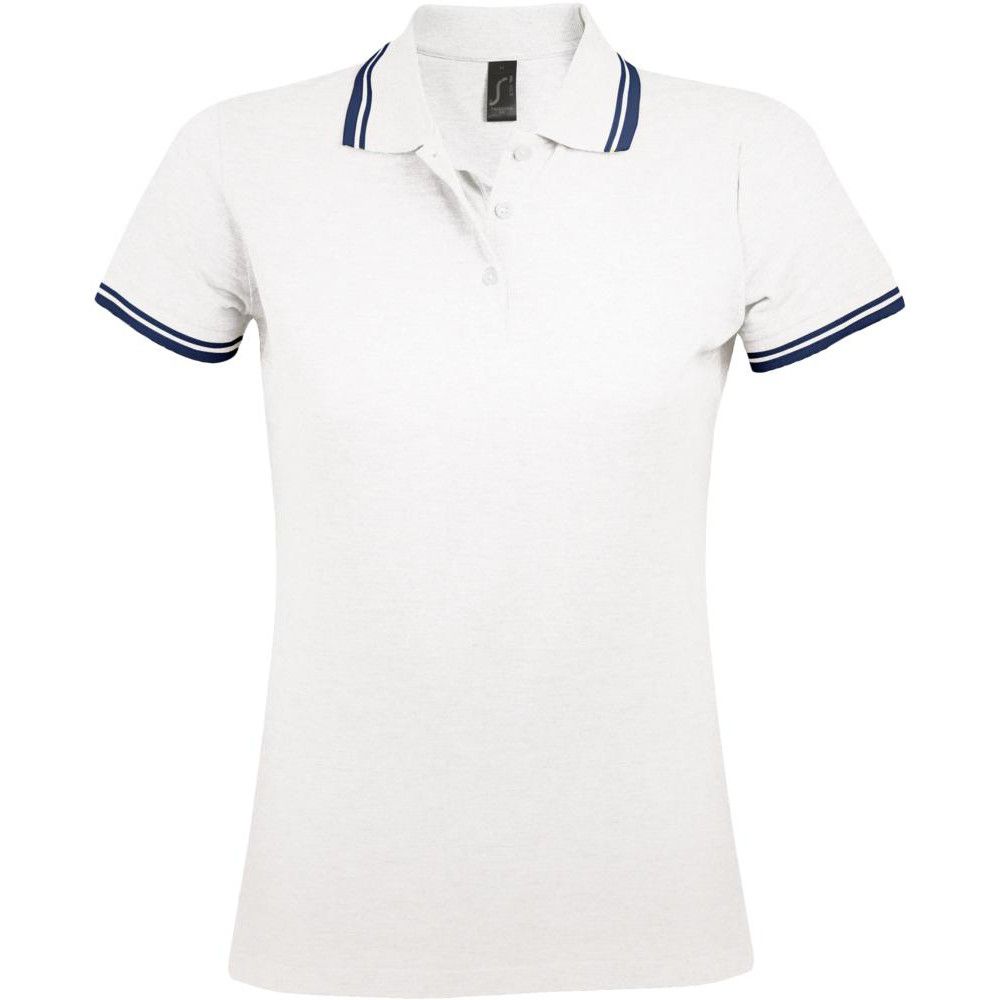Рубашка поло женская Pasadena Women 200 с контрастной отделкой, белая с синим
